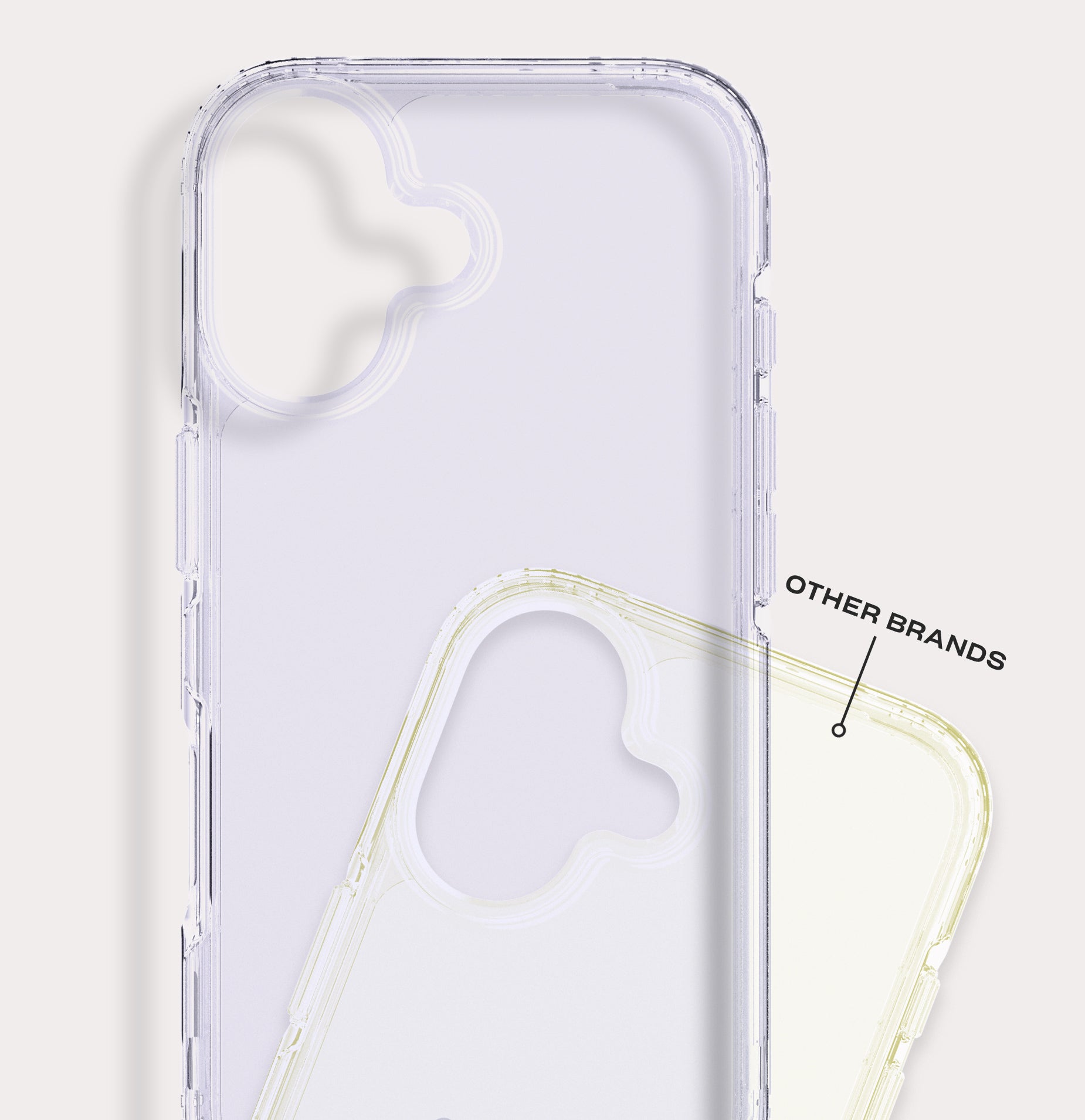 A completely clear case that gives you the chance to admire the sublime beauty of your iPhone’s original design. This hygienically clean case protects your iPhone – and its camera – in every way while the in-built UV-resistant materials ensure it won’t yellow or discolor in sunlight.